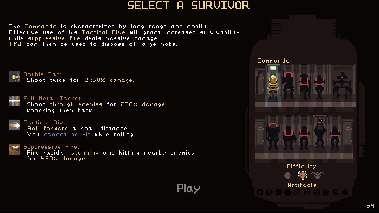 You pick your survivor before starting the game; I, of course, only have the Commando unlocked because I'm terrible and can't even finish basic challenges to unlock the other characters. That being said, the Commando is actually pretty rad. Each character has their own set of skills and the starter isn't so bad.