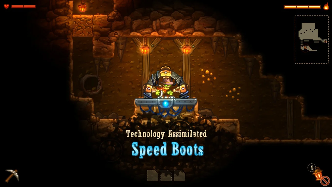 Once you're deep enough and fight your way passed the trilobites and skeletal turtle missile launcher things, you'll start to find caves. Exploring these and completing the platforming puzzles yield Megaman X-like upgrades. This is when the game picks up and changes completely. You'll continue to dig deeper, finding more upgrades and learning more about the world you're in.
